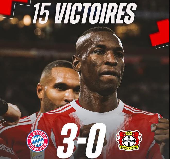 药厂德甲客场不败纪录终结!拜仁3-0勒沃库森,15连胜宣战大巴黎